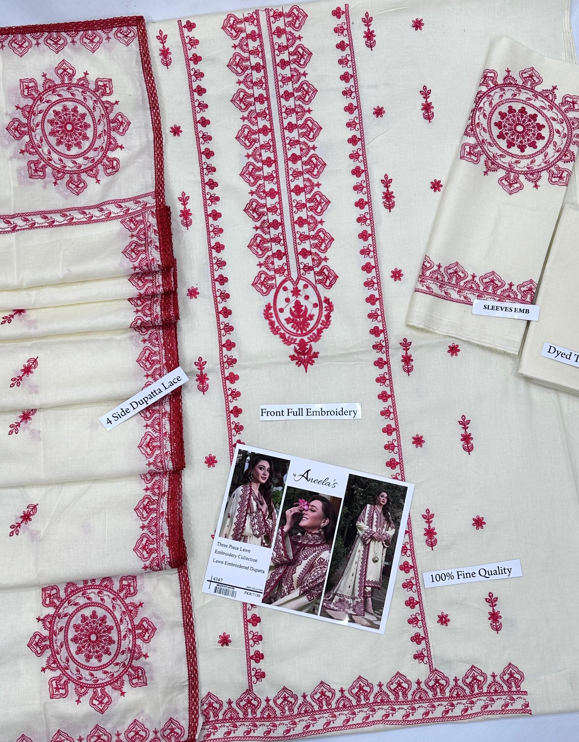 ANEELA’S LAWN WITH EMBROIDERY LAWN DUPATTA
